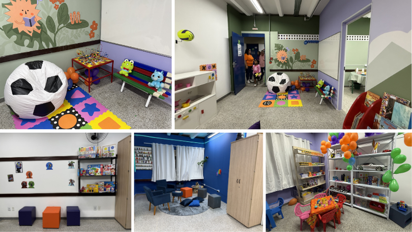 A responsável pelo apoio pedagógico e cuidado infantil da unidade, Silvana Viana, ressalta o caráter inclusivo da cuidoteca, que atende também mães atípicas. “A cuidoteca foi planejada para acolher também mães atípicas, oferecendo um espaço seguro, acolhedor e adaptado para crianças autistas. O ambiente garante conforto e tranquilidade, com equipe preparada para lidar com situações de desregulação e assegurar um atendimento cuidadoso e inclusivo”, explicou.